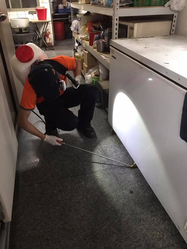針對餐廳施作採殘效噴灑+細縫處理+點藥處理三種施作工法。