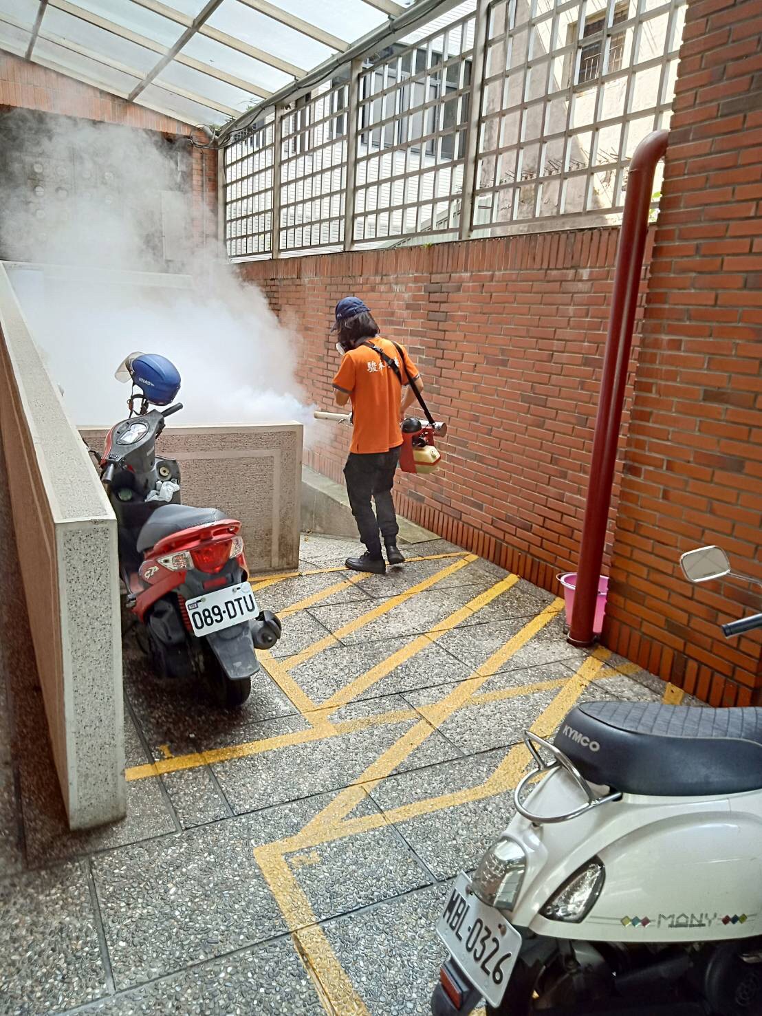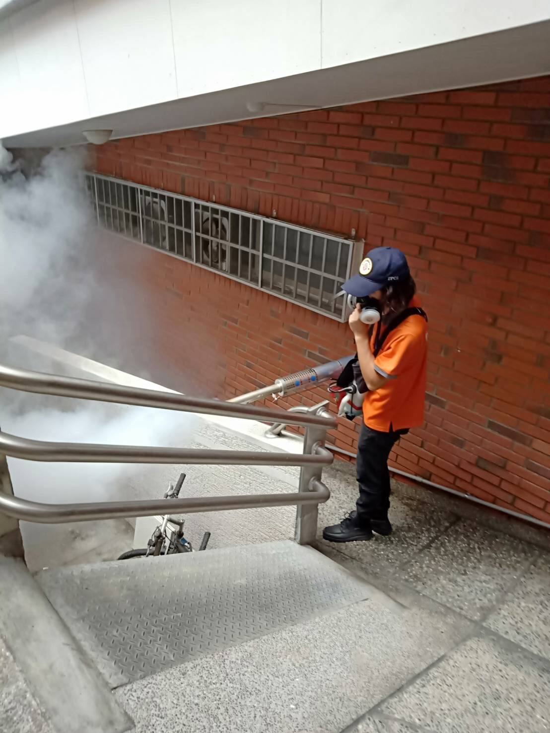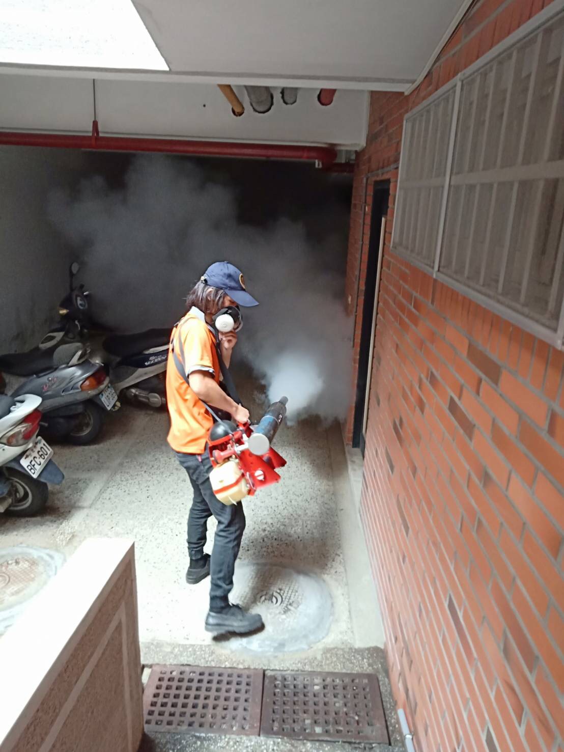 學校戶外公共空間及水溝週邊噴藥+煙霧氣薰,並針對化糞池投藥處理,有效滅絕蚊蟲問題